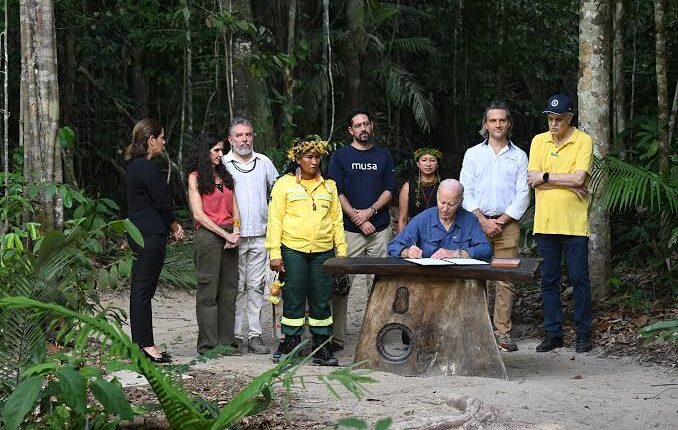 As part of his visit, Biden took an aerial tour of the Amazon and visited the Museu da Amazônia, where he engaged with Indigenous leaders, conservationists, and local entrepreneurs.