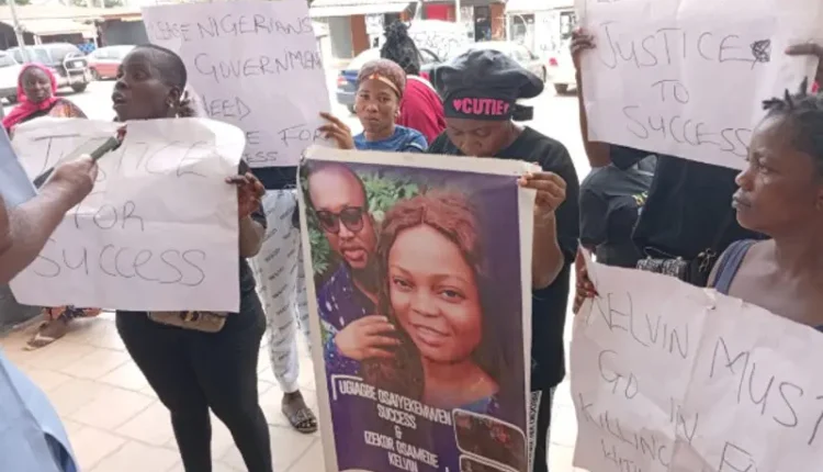 Market women in Benin City, Edo State, staged a protest on Monday, demanding justice for Success Izekor, a four-month-pregnant trader allegedly murdered by her husband, Kelvin Izekor.