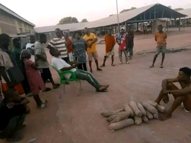 A suspected yam thief has been apprehended at the popular Zaki-Biam Yam Market in Ukum Local Government Area of Benue State.